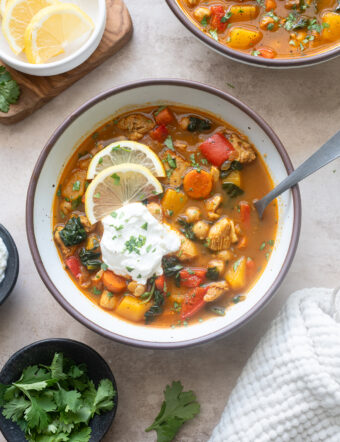 This Moroccan Chicken Soup with Chickpeas isn’t your average chicken soup! It’s juicy chicken thighs, hearty chickpeas, and vibrant veggies simmered in warm, fragrant...