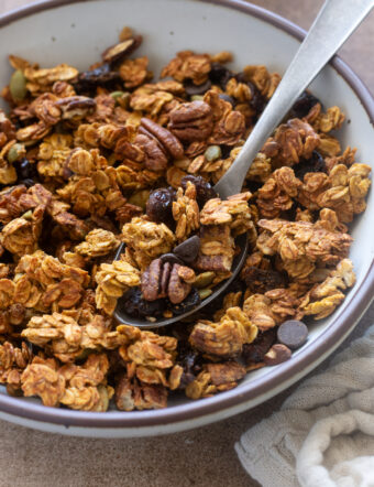 This Pumpkin Spice Protein Granola is the ultimate fall breakfast or snack! It’s made with real food ingredients like rolled oats, pumpkin puree, maple...