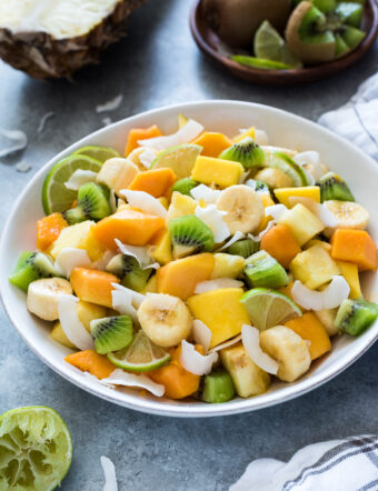 This Tropical Fruit Salad is a refreshing blend of sweet tropical fruit, fresh lime juice, and toasted coconut flakes. It's so easy to make...